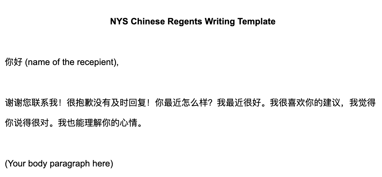 Chinese Worksheets New York State Chinese Regents Email Writing Template PreviousNew York State Chinese Regents Speaking Test Survival Vocabulary NextChinese Regents Mock Reading Questions 2020 (Six Passages) New York State Chinese Regents Email Writing Template New York State Chinese Regents Email Writing Template $4.99 Your payment is non-refundable. Add To Cart Facebook0 Twitter LinkedIn0 Reddit Tumblr Pinterest0